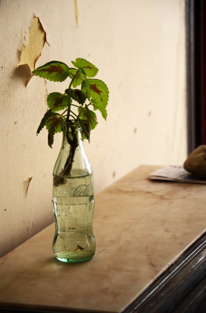 Gracias también por hacer que lo más hermoso que he visto hoy martes (salvando esta mierda de rutina en la que estoy instalado) sea un envase noventero de cocacola reciclado en hogar temporal para un esqueje de rosal. ¿Llegó a sobrevivir? Dime que sí